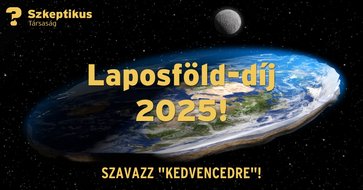 Az idei már az ötödik alkalom volt, hogy a Szkeptikus Társaság odaítélte a Laposföld-díjat, melynek ceremoniális “átadására” a Föld Napján, április 22-én került sor. A nem túl hízelgő “elismerés” annak jár, aki az egyesület és szimpatizánsai megítélése szerint az elmúlt évben a legnagyobb társadalmi kárt okozta azzal, hogy magyar nyelven, széles nagyközönség előtt terjesztett tévhiteket, álhíreket, áltudományos vagy tudományellenes nézeteket, s ezen tevékenységével nagy mértékben rombolta a tudomány, a józan ész és a tények társadalmi elfogadottságát.